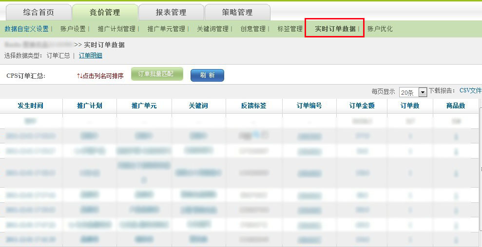 EMARBOX系統(tǒng)競價管理--實時訂單數(shù)據(jù)模塊為聚美提供當(dāng)日關(guān)鍵詞訂單轉(zhuǎn)化情況,滿足當(dāng)日關(guān)鍵詞篩選、匹配、時間段、預(yù)算各方面的調(diào)整需求。